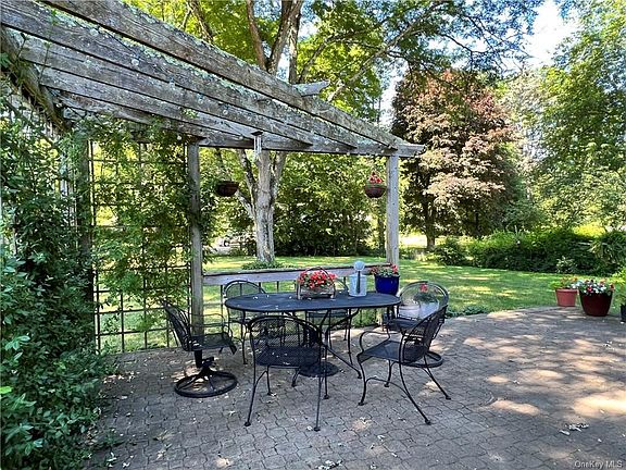 Welcome to Park Avenue in Red Hook Village. This spacious mid-century colonial sits handsomely on a corner parcel and is just a short walk to Red Hook's schools, parks, shops, and restaurants. Relax on the patio in the fully fenced backyard, under the pergola and enjoy your own private park-like setting with mature trees & lush perennial plantings. The interior features bright, spacious rooms, large windows and the perfect blend of open concept and private spaces. French doors lead from the dining room to the backyard patio. There are oak floors throughout the main living areas, central AC and 3 heating and cooling zones. The large open kitchen was beautifully redesigned in 2019 offering tons of storage, an 8' stainless island, stainless appliances, quartz countertop and penny tile backsplash. The living room has built-ins framing the view of the beautiful yard and a wood burning fireplace. There's also a half bath and a first-floor office or guest room. Upstairs are four large bedrooms and two updated full baths. The primary bedroom's ensuite bath has a walk-through closet, an oversize jetted tub and large walk-in shower. Downstairs is a big and beautiful family room with wood-looking tile floors and plenty of room for exercising, movies and/or board games. This one's not just a house...it's a home!PLEASE NOTE: the seller is a licensed real estate salesperson with a financial interest in the property