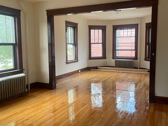Large 3 family house with large 1600 sq foot apartment on SECOND floor of house. Ample parking on street. Apartment has beautiful hardwood floors, kitchen with granite counter tops and a side kitchen nook. Also this 3 bedroom features a living room, dining room, kitchen eating area, washer dryer hookup, Brand *New half bathroom just added. AVAIL OCT 1ST Brand *New stainless steel fridge and stove. There is a door to your right before you walk in the apartment that has a private entry way for your private newly painted balcony. The balcony has a beautiful view of a church. Apartment has a locked storage unit in the basement about 15x15. There is also an encased rear stairwell which has large windows for fresh air and places to put items out of your apartment but not exposed to the weather. PETS allowed. Up to 2 pets 6 Month lease to start. PETS allowed. Up to 2 pets if dogs will be requested I need to meet them at the apartment showing. INCLUDED UTILITIES. Trash removal weekly. Water, Electric, hot water, only utility you are responsible for is wifi/cable and heat in the winter. Heating system is run with oil.