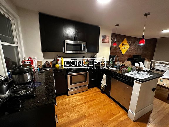 Modern 4 bed 2 bath with Hardwood floors Updated kitchen with dishwasher In unit laundry Back deck, and more ! Video tour available Owner pays for water Parking available Tenants responsible for heat and hot water