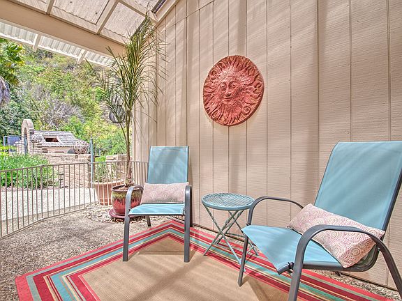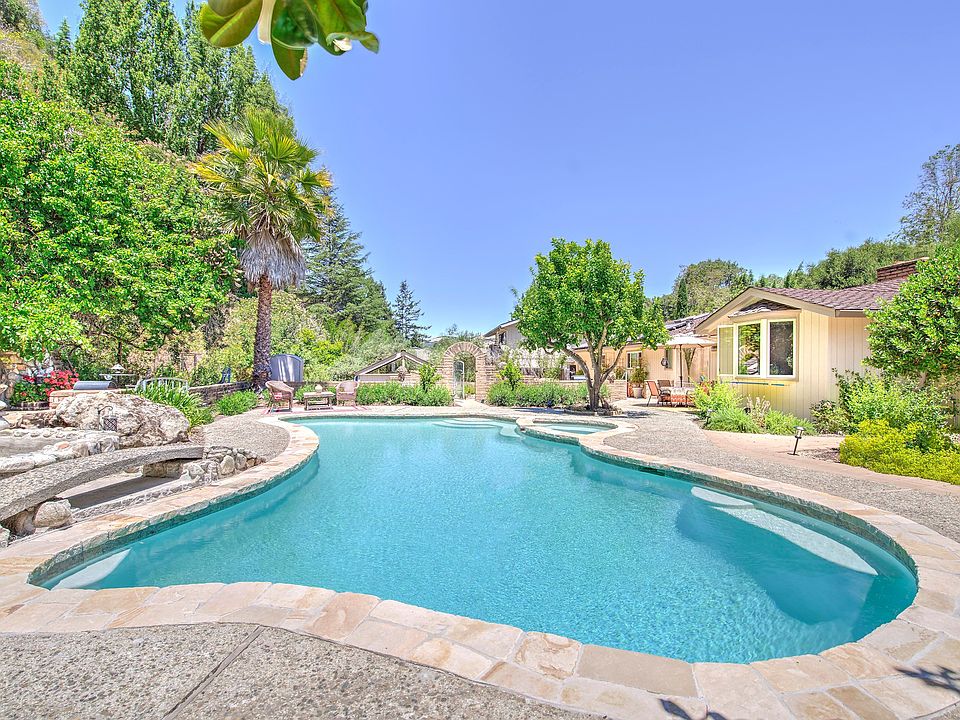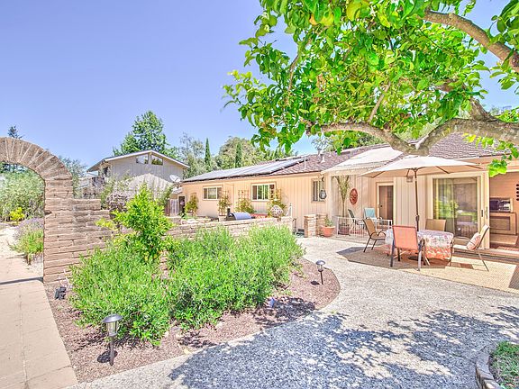 Bathed in sunshine on a quiet cul de sac is this single level 4 bedroom 2.5 bath home with a private fenced back yard on a 1 acre lot. Indoor and outdoor living at its best. Outside features a beautiful patio with a swimming pool, BBQ, herb garden, greenhouse and a real wine cellar. The interior features a vaulted ceiling, planked wood floors, two fireplaces, plantation shutters, a separate den and dining room. The kitchen has granite surfaces with built in top brand appliances and the baths have been updated. This immaculate home has been cared for and enjoyed by the same family for the last 24 years.