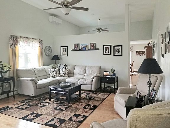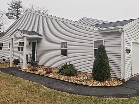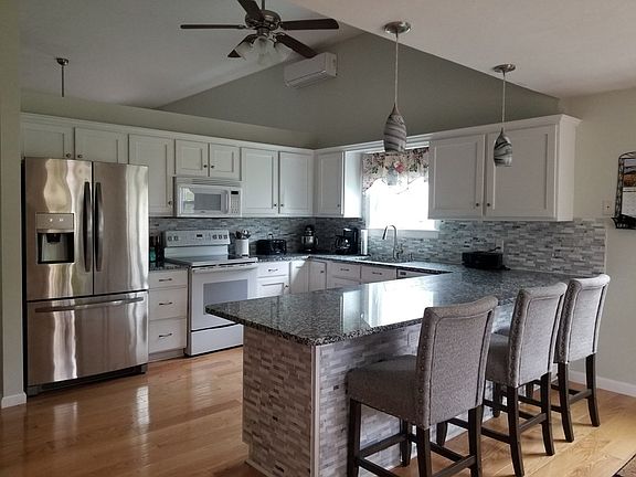 Showings begin at open houses Saturday, April 22nd & Sunday, April 23rd for this beautiful end unit at Pinewood on the Green. This sun filled, ranch style condo with high ceilings has an updated, eat-in kitchen with white cabinets, granite counters, stone veneered backsplash and breakfast bar. The dining area has sliders leading to the newly done deck and back yard. Hardwood floors throughout except bathrooms that are tiled. Both full baths are updated. One has a bathtub and laundry and the other has a shower stall. Both bedrooms are very spacious. All windows were replaced in 2019 with the exception of the 2 in the garage. 3 newer mini split systems were put in for AC and a backup heat source. Basement is finished with wall to wall carpet. New high efficient water heater put in in 2022. New stainless refrigerator in 2021. Neutral paint throughout.