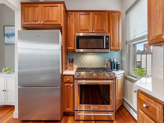 Pristine, fully renovated two bedroom floor-through condo offers high end finishes for under $600k. Enjoy exceptional natural light from southern exposures, multiple windows and tall ceilings. Spacious eat-in kitchen updated in 2018 boasts Kitchen Aide range and dishwasher, Fisher-Paykel refrigerator and cherry shaker-style cabinetry. Renovated full bathroom offers ceramic tile flooring, subway tiled tub/shower, storage vanity and linen closet. Ideal floor plan with wonderful flow and no wasted space. In unit washer/dryer, common roof deck and extra storage. All this in a self-managed, pet friendly association with low condo fees ($140/month).