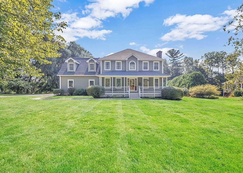 Feel welcomed the moment you arrive to this amazing home with the perfect front porch greeting you. Enter into this beautiful 3 bedrm Colonial perched on close to an acre lot near the South Hadley, Granby line. Wonderful open floor plan with the Living Room and Kitchen. Cozy up to the fireplace with brick hearth and gleaming wood floors. Enjoy creating your culinary creations in the stylish kitchen complete with granite counters, expansive center island and dining area. Formal dining room and half bath with laundry complete the first floor all with top notch finishes. Upstairs delight in a lovely main bedroom with en suite and sleek walk in shower with shower bench and glass surround. Two great size bedrooms with ample closet space and ceiling fans. Fantastic bonus room with wood floors, ceiling fans and so much space. Fantastic outdoor space with a sensational composite deck overlooking the fenced in backyard, Star gaze while soaking in the hot tub. Move in ready and waiting for You