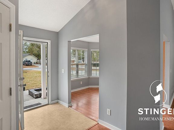 Discover this inviting dog-friendly, one-story home in the Audobon Woods community, featuring 3 spacious bedrooms and 2 full bathrooms. This residence boasts modern LVP flooring and fresh new paint offering both durability and style. Washer/Dryer included in the 1-car garage for added convenience. Step outside to enjoy the private, fenced-in backyard complete with a deck, cozy fire pit and bench swing - perfect for entertaining or relaxing. Additionally, a convenient storage shed provides extra space for your outdoor equipment and belongings. Don't miss out on this opportunityschedule a viewing today!Luxury Vinyl Planking