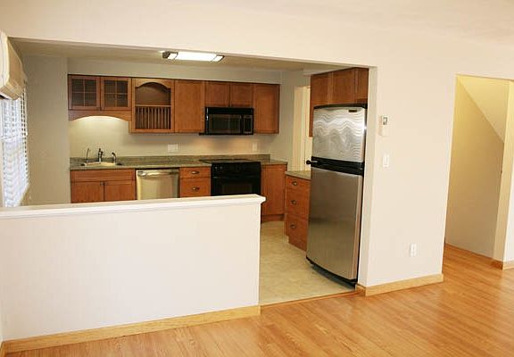 Immaculate 2 bedroom townhouse with first floor study, lower level family room, 1.5 baths, new washer & dryer, hardwood floors, new baths, modern interior with new mini blinds and contemporary light fixtures, nice kitchen, electric stove. Nice views, cul-de-sac. 1600 square feet, nice fenced backyard with deck.Tenant pays sewer, water, garbage. One small pet maybe.