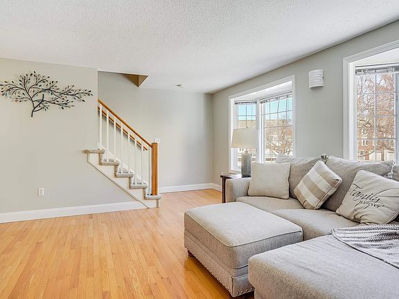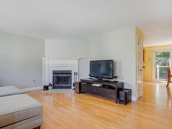Arguably located in the best spot in the development, the privacy and wooded view off the back of this end unit just might make you believe you're in the country. Inside, whether you crave a quiet night cozied up to the fireplace or having friends over to stream a movie, the generous living room with its hardwood floor and double bay windows delivers. The efficient working kitchen area and adjacent dining area are up to the task whether it's entertaining or supervising homework while preparing a casual meal. The main floor half bath offers space for your washer/dryer. The oversized master bedroom supplies plenty of room to relax, 2 closets and direct entry to the full bath. It also offers a loft for more space. How will you use it? Reading nook, music listening area, home office? It's your choice! The second bedroom is surprisingly large and offers 2 double closets and an invitingly serene view. The lowest level offers a one car garage, a convenient area to leave your outerwear and shoes, a finished storage room and an unfinished utility room. This welcoming townhouse was converted from its original electric heat to oil and offers central air conditioning. A very reasonable $220.00/month condo fee is sure to seal the deal. Showings, by appointment only, start at 11:00 a.m. on Saturday, February 19, 2022. AGENTS SEE NON-PUBLIC REMARKS.