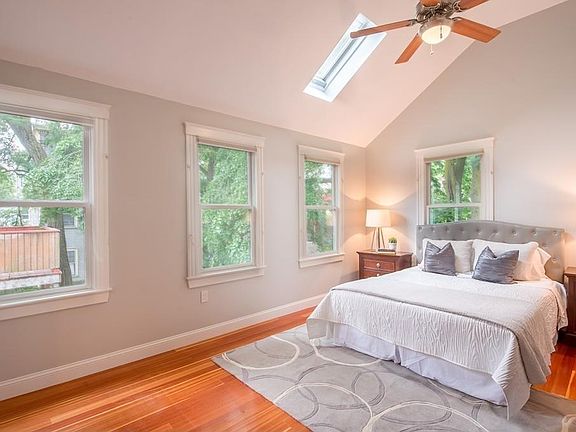 Located on a residential side street in the heart of Cambridgeport, this wonderful home is well located to area amenities, a 7 minute walk to Central Square. This townhome residence (built in 2004) has a singe-family feel, tucked away from the street and over looking the lovely grass common space. Open living area with gas fireplace, graciously opens to large private deck. Home includes hardwood floors throughout, quartz countertops and stainless steal appliances. Master and second bedrooms both feature soaring vaulted ceilings and en suite baths. Full size washer and dryer are conveniently located on the bedroom level of the home. Lower level of the residence is comfortably finished and has flexibility for family/media/office space. Ample storage. One off-street parking space.