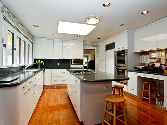 A fabulous floorplan with open, airy spaces and decks leading off of several rooms,cathedral ceilings,skylights,2 fireplaces and a 1st floor master bedroom with new (2013) master bath. Many updates including recent kitchen and bathroom renovations. Wonderful home in move in condition.Private property close to downtown Rye and Westchester Country Club. Taxes were reassessed and have been adjusted!
