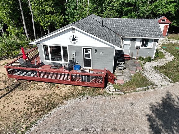 Imagine life in this fully furnished 3-bedroom, 1.5-bath bungalow in Oliphant, just minutes from sandy beaches, Sauble Beach, and the charm of Wiarton. Welcome to 12 Pierce Street, a charming bungalow tucked away on a quiet dead-end road in the heart of Oliphant. Sitting on a generous 130' x 137' lot, this move-in ready property is perfect as a year-round home, weekend retreat, or investment. Inside, the bright open layout features large picture windows, an inviting blue kitchen, and two cozy living areas - one with walkout access to a wraparound deck and patio, ideal for entertaining. The home is carpet-free, fully furnished, and built on a solid insulated foundation (2017), offering comfort and peace of mind. Recent updates include a new front door (2025), three insulated bay windows by Vandolders Owen Sound (2025), upgraded electrical panel (2024), new plumbing, shingles (2017), and septic system (2017, pumped and inspected 2024) with municipal water. Outside, enjoy a circular driveway, fire pit area, 8x8 shed with hydro, and a Shelter Logic garage. The location is unbeatable: bike to Oliphants sandy beaches and shallow waters, or take a 10-minute drive to Sauble Beach or Wiarton for dining, shopping, and year-round activities. This Oliphant bungalow offers space, updates, and a prime location close to Lake Huron.