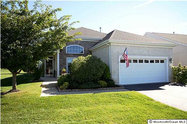 Avalon model on a corner lot w/courtyard boasts gleaming hardwood floors, crown molding, formal living & dining rooms, den w/sliders to front courtyard, 42" cherry cabinetry uniquely designed with custom pantry, granite counters, nook w/bay window & family room w/gas fireplace. Master bedroom suite w/two walk in closets, master bath w/double vanities, & Jacuzzi tub. Second bedroom full bath, large laundry room & attached garage. Patio backs to non-buildable common area.