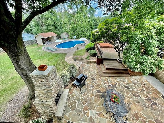 Outdoor & Indoor living at it's Best!! One-story brick ranch w/a detached, above garage apartment w/additional 600+sqft living space. Home Theater, Saltwater pool, Hot tub, Cabana, Flagstone Patio w/outdoor fireplace, all located w/in walking distance to Sedgefield Country Club, putting range, driving rage, Pro Tennis Shop, & more! Updates galore! New Monarch Stack Stone fireplace added to the great room. Updated kitchen w/granite counter tops, updated tile floor in laundry, half bath, & hall bath. Updated light fixtures throughout. Updated Primary En-Suite w/granite counter tops, huge walk in shower w/dual shower heads! Surround Sound in ALL the right places! Cabana includes kitchenette, half bath & outdoor shower. Pool includes new custom liner w/solar ledge, new custom safety cover, LED lights, Variable Speed, Pentair Pool Pump. Apartment is home to 1bed, 1full bath, w-in closet, breakfast nook, kitchen & living room! Enjoy the Wyndham Championship tournament steps from your home!!