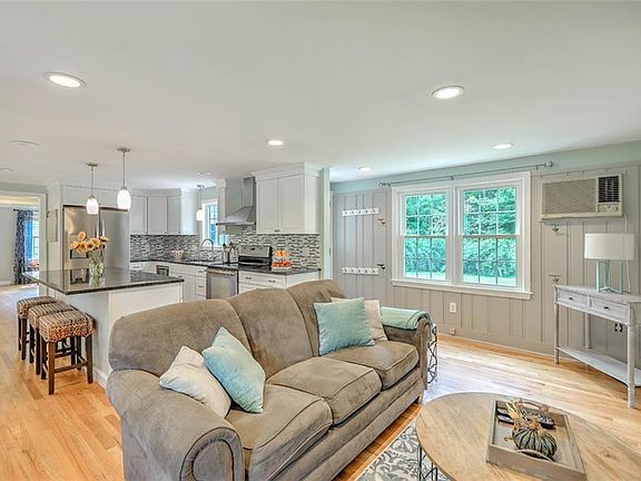 A Garrison style Colonial home with modern day comforts and an abundance of natural light from 2 front picture windows makes this home bright and cheerful. An inviting home offering a classic floor plan with 3 BRS and 1.5 BTHS, a central staircase, front to back living room w/ fireplace and an enclosed 3 season porch off the back and a deck to expand your living space to the outdoors. The open kitchen features, SS appliances, black granite counters, lots of cabinet and island counter space for storage. Off the KIT is a cozy FR/DEN featuring tongue & groove paneling. The 2nd fl features the 3 BRS and 1 FBTH, additionally, there are HWD floors throughout the entire home. The seamless flow between the living spaces creates an appealing space, perfect for day to day engagement and entertaining with family and friends. The energy efficient furnace in the full basement is new within the last few years. Outside, the private backyard setting abuts a woody buffer between St. Andrew’s Farm and Soccer Field, the yard itself also offers an in ground sprinkler system for a manicured yard. Centrally located, it is nicely, nestled within the popular Primrose Hill Neighborhood, presenting convenient walkability to schools and easy access to highway and Providence commuting.
