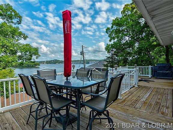 Great location in Lake Ozark only minutes from The Bagnell Dam Strip and all of the activities associated with it. Double lot with the possibility of building another home on the property! Wonderful views, deep water, and over 85 feet of lake frontage. Blacktop roads, plenty of parking and nice decking to soak in and appreciate the views and beautiful sunsets. The home sits up off of the water but the property does go down to the lakefront and it is only a few steps and a short walk to the two well boat dock that goes with the house. The 3 bedroom, 2 bath home is very comfortable and offers a great opportunity for a vacation rental in Lake Ozark. Who wouldn't love to be this close to the strip! Several nice features including: city sewer, newer HVAC and water heater, pellet stove, a large laundry room with wonderful storage cabinets, and an open kitchen with a nice center island. Expansive deck and patios with a hot tub and several shaded relaxing places to lounge.