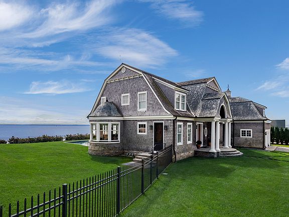 This exquisite Shingle Style home designed by Point One Architects reflects a sense of calm from the moment you enter the double height foyer with a stunning compass rose inlaid into beautiful clear maple flooring. Spectacular windows and doors open from every first floor room revealing endless water views. Brilliant blue hydrangeas frame the outdoor entertaining area, with stone terraces, a Pebble Tec pool and outdoor kitchen. The home sits approximately 18 feet above the beach with a wide staircase to the shore. A spacious Great Room with fireplace incorporates a distinct hexagonal dining area completely framed by windows. Adjacent is a custom Poggenpohl kitchen, wet and dry bars and desk area, as well as a private study. The second level features expansive bedrooms with custom cabinetry and stunning views. The master suite with private waterfront balcony, dressing room and commodious bath, is an intimate oasis. An inviting staircase leads to a magnificent third floor library. There is also a large media room with 180 degree water views. Exquisite materials, including onyx and marble baths and custom mill work throughout, create an architectural gem. A three story elevator shaft has been incorporated into the construction and detailed architectural plans for a two bedroom guest wing are included. Every aspect of this elegant yet comfortable property, with 180 feet of Long Island Sound waterfront, provides unparalleled privacy, rarely available on the Connecticut shoreline.