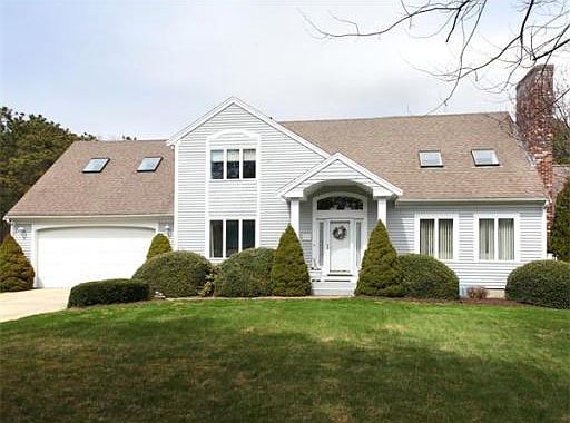 Pretty Cape in Holland Mills Estate. Very bright open floor plan with master bedroom on first floor with private bath. White, bright kitchen open to dining room and cathedral family room. All hardwood floors. Living room is cathedral, skylights and gas fireplace. Second level has two additional bedrooms with a finished loft area and a finished bonus room over the garage. The lower level has a finished room and plenty of storage and closets for collectables. The lot is level, fenced across backyard, has a nice size deck with sliders into kitchen/dining room area. Holland Mill's Estate is a neighborhood of nicely maintained homes, ideal for walkers. Minutes to Mashpee Commons and not far from Mashpee's South Cape Beach. All measurements and information should be verified by buyer for accuracy.