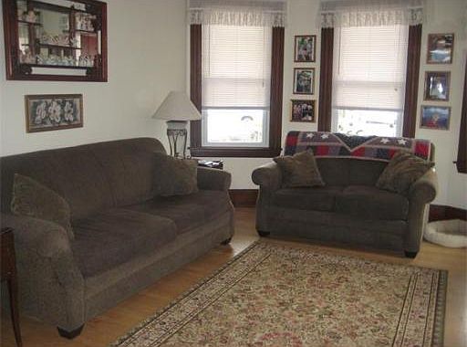 BIG PRICE REDUCTION! 2000SF and 9 rooms! Unique, charming and well maintained half duplex home with three levels and conveniently located on a quiet side road just minutes from major routes and shopping. This home has 3 bedrooms on the 2nd floor and an additional 3 rooms on 3rd floor with full walk up stairs to 3rd level. First floor with living room, french doors to dining room and eat-in kitchen with access to side porch. Two full baths and one car garage in rear with plenty of off-street parking. Nice wood trim moldings and hardwood floors under all carpeting. Great starter home or perfect if you are looking to downsize. Only half of the house is being sold. Not a two-family.