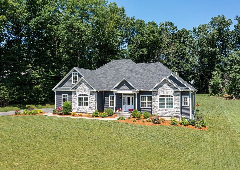 Stunning! Open concept & one level living at it's finest in this custom designed 3+ BR, 3.5 bath expanded Ranch. 11 foot ceilings, quality craftsmanship, gas fireplace are some of the many special features to enjoy here. The kitchen boasts beautiful quartz counters, stainless steel Viking appliances, deep farm sink, island/breakfast bar and custom cabinetry. 1st Floor offers a primary bedroom suite with atrium door private patio access, tray ceilings, recessed lighting, walk-in closet & ensuite glamour bath, featuring a soaking tub & separate tiled shower. An independent bedroom wing boasting 2 additional first floor bedrooms & full bath also on main level. Laundry & guest lav complete the first floor. Upper story offers a bonus room for a 4th bedroom/guest quarters or home office space w/3rd full bath. Basement features high ceilings to allow more expandable space. Custom patio & fire pit enhance your outdoor living/entertaining area. HIGHEST & BEST OFFERS DUE MONDAY, 7/18/2022 by 3PM