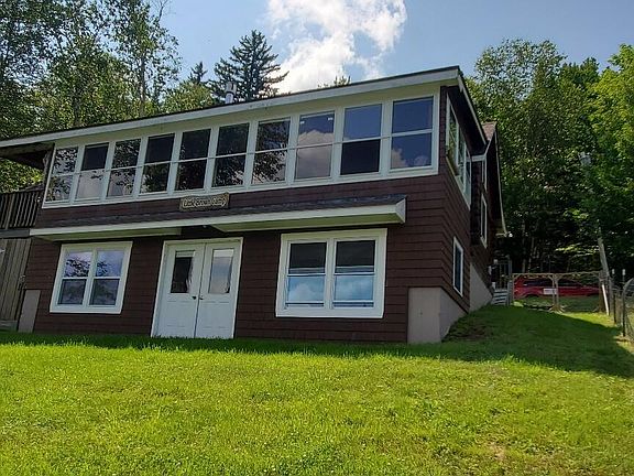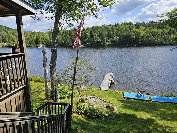 On Beaver Mountain Lake (aka Long Pond). With 110 feet of private owned shoreline and windows all along the front, this camp is a great retreat from the hustle and bustle of city life! Come sit by the stove and enjoy the peaceful water and mountain views! The walk out basement leads into a nice fenced yard and to the dock with easy access to swimming, boating, and fishing. 2 bedrooms on the main floor, a cozy finished loft and a finished basement with full baths on each floor. This camp can sleeps 7+. Sit on the large covered porch and enjoy the fresh air while the gentle breeze keeps the bugs away. Saddleback Ski Resort, snowmobiling, golf & Rangeley amenities are just minutes away! Check out the low taxes in the Plantation! Electric has been updated. Pop Dyer Road is a private right of way and is plowed during the winter.