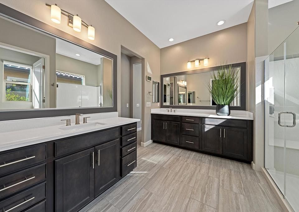 Discover unbeatable value in this exquisitely upgraded, stylishly furnished, turn-key ready home with owned solar, offering both luxury and efficiency and the ultimate haven for entertaining. Located in a tranquil cul-de-sac, the 'Journey' floor plan extends over 2,500 sq ft. The gated courtyard with a serene fountain welcomes guests to an open-concept main living area that seamlessly flows into a formal dining space. The stunning multi-panel sliding glass door system with a retractable screen and remote-controlled blinds enhances indoor-outdoor living, leading to an expanded patio with a retractable awning--perfect for entertaining. The gourmet kitchen, featuring upgraded cabinets and countertops, a 6-burner Thermador range, and a reverse osmosis water system, is a chef's delight. Additional conveniences include a chic cafe off the kitchen, a spacious pantry, and a butler's pantry. The Primary suite has dual vanities, a step-in shower, and an oversized walk-in closet. The private second ensuite, located on the opposite wing of the home, offers direct courtyard access. The versatile den/study can easily be converted into a third bedroom. The 2-car garage comes equipped with insulated doors, overhead storage, and a golf cart garage/flex space ideal for various uses, such as a personal gym or yoga studio. Both garages have individually controlled HVAC systems. DWRM is a 55+ community with just over 1,000 homes offering an array amenities and clubs within the community.