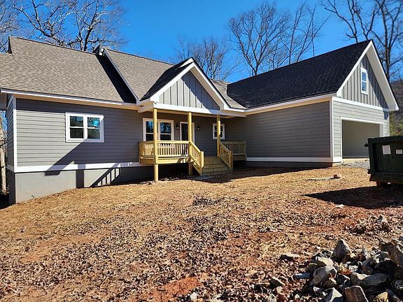 This beautiful Macintosh plan is one level with every thing you need. The flat yard with a wooded back yard will provide some privacy as you hang out on the covered porch with vaulted, pine, tounge and groove ceilings. The great room has vaulted ceilings as well with a stone wood burning fireplace for the cool mountain nights. This open floor plan is perfect for entertaining your family & friends with a split bedroom plan, separate dining area and in the kitchen where every one hangs out is a 72 inch island. Granite counter tops, stainless steel appliances and white cabinets makes this kitchen a chefs dream. You will love this gated neighborhood close to town with lovely homes, paved roads, fiber, city water, views and open common area. You will believe that you have found a little piece of heaven on earth. Rendering is for reference only, home may not be finished exactly like it.