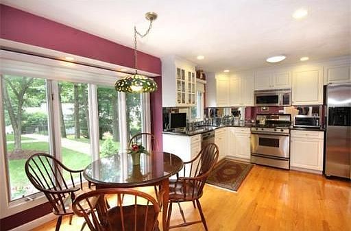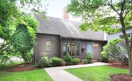 Lovely, private end-unit at Potter Pond. Updated spaces and an open floor plan offer plenty of sunshine and versatility. The newer kitchen has stainless steel appliances, granite counter tops, pantry and large breakfast-area with picture window and views of the professionally landscaped terrace and garden. Sophisticated, updated living room with gas fired fireplace offers access to private deck through newer sliding french doors. The first floor mater suite boasts cathedral ceilings, skylights, recessed lighting, walk-in-closet and private bath. Meticulously maintained grounds, tennis courts, walking trails and ease of living await you in this lovely find. 1 car detached garage, reasonable monthly condo fees and ample guest parking are all included.