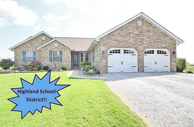 HIGHLAND SCHOOL District on 2 acres!! 3 bedrooms, 3 baths, granite countertops, & wood floors. Perfect entertaining areas from the main floor to the 4 season room to the bar & family room in the lower level! This updated kitchen includes a huge center island, lots of cabinet space, stainless appliances, double oven, desk area, & upgraded fixtures! 2 "Bonus" rooms in the basement could be used as office space, play rooms or bedrooms (no egress). Wet bar area adds lots of extra cabinet space, refrigerator, wine rack, a great place to hang out! Outside you'll find a 20x30 oval "V Bottom" pool, hot tub, 24x32 outbuilding with a 1/2 bath, large patio, & tasteful landscaping! This home is Move-In ready & perfectly maintained, nothing has been left undone!!! Large yard with a very peaceful setting, & lake access for everyone in this small subdivision. Seller is offering 1 year HMS Home Warranty. Great Location!! Just 25-30 minutes to SAFB, 15 minutes to I-64 or I-70.
