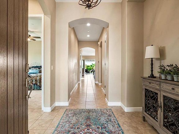 RARE 3 Bed/2 Ba Tuscan HAVEN with OWNED SOLAR and INSULATED GARAGE situated on one of the largest private mountain view lots in Del Webb. Elevated west, south and north mountain range views will captivate you from both the south facing side patio and rear west facing patio - both enhanced with aluma-wood patio covers, lush landscape with lighting and a water feature. Inside features all tile flooring, soft arch package, custom paint in Nantucket Dune, lighting, nickel hardware, and window coverings. Added features include CENTER SLIDING GLASS DOOR, Executive island, upgraded counters and sink, pendant lighting, built-in refrigeration and upgraded appliance package. Baths feature vanity lighting, roll in shower and separate vanities In owners bath plus tub/shower combo with solid surface upgrade surround in bath 2. Del Webb is the Desert's PREMIER 55+ community situated in the heart of the Coachella Valley conveniently located close to shopping, dining, the airport, El Paseo, Golf and much much more. Don't wait long to see this one. It will check all the boxes.