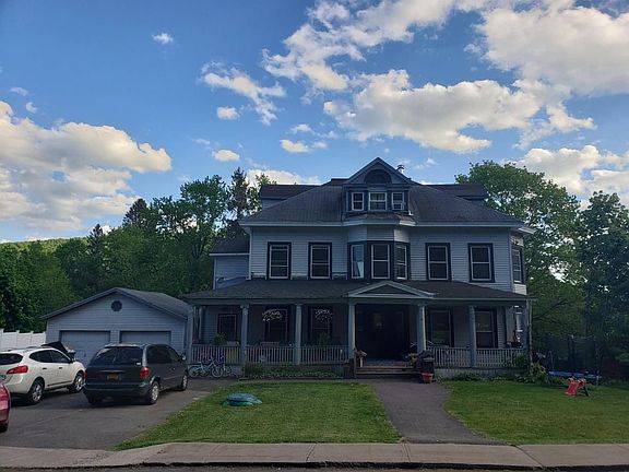 Money Maker! Income producing property has the potential to make even more. Currently there are 4 apartments, all 4 are rented to good tenants. An entire unfinished second floor could be transformed into another 2 or 3 apartments. Current owner has rough framing and rough plumbing for 3 new apartments on the second floor that could bring in up to an additional 25k annually. Lots of storage space including a 2 car garage. Village water and sewers. Lots of original woodworking and built-ins throughout.