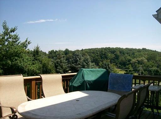 Center Entrance colonial. Nearly 1/2 acre lot on cul-de-sac. Gracious entry foyer. Stunning recently updated eat-in kit includes oversized 4 seat tan/brown granite breakfast bar, custom birch cabs w/tile backsplash. All stainless appliances including Bosch double ovens & Moen gas stove. Huge familyroom w/gas fireplace & cathedral ceilings. Elegant DR feat wainscotting & tray ceiling. 4 generous bedrms and cathedral MDR. Elevated deck has tremendous expansive views, walkout LL to great back yard