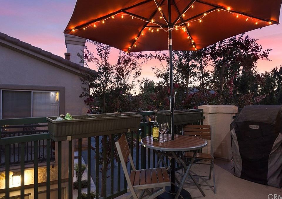 Gorgeous remodeled end-unit condo with no one above or below you. Situated in the upscale Bella Ventana tract next to the trails this home boasts direct garage access, two bedrooms and two full baths plus a long list of tasteful upgrades: inch solid mahogany wood floors and stairs, custom fireplace mantle with travertine hearth, crown molding in every room, 4 inch baseboards, cased windows, wood blinds, custom railings, refinished cabinets with soft close hinges and draw slides, newer faucet, surround sound throughout the entire home, ceilings fans, air conditioning, cabinets in garage with stainless steel counter, new water heater and a lovely view balcony. Washer, dryer, refrigerator, stove and microwave all included. One car garage with direct access and one reserved parking spot just a few steps away. Community amenities include swimming pools, parks and beach club access. Only minutes from award winning schools, the toll road, parks, shopping and restaurants. Just perfect. Hurry on this one.