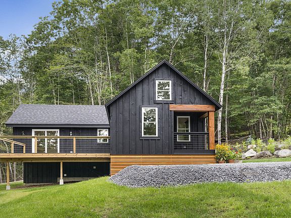 This just completed, mountain retreat with rustic, elegant design is nestled into an outdoor enthusiast's dream location. A well-landscaped yard and Icelandic-inspired exterior abuts 914 acres of the Ragged Mountain Preserve - trails for hiking, mountain biking, snowshoeing and cross country skiing. The interior has 15-foot cathedral ceilings, open beams, a built-in gas fireplace, wide pine floors throughout and opens to a large, private deck for entertaining. All ceilings and walls are from Maine harvested pine. The light-filled, eat-in kitchen includes artisan-made concrete countertops, Café appliances, and a custom island. Open the windows in the primary suite and hear the rushing stream steps a away in the nature preserve. The bedroom also provides a forest view, a large closet, beautiful lighting and a bathroom with a walk-in shower. The second bedroom suite with a bathroom is on the lower level. Immediate access to Ragged Mountain, a short walk to Bald Mountain Preserve and five minutes from downtown Camden, this Maine Chalet is a must see!