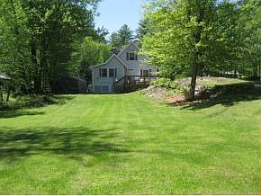 Golden opportunity on Rainbows End in Hillsborough!!! The setting is landscaped on a large .88 acre lot. This two to three bedroom A Frame Chalet is in outstanding condition. Large Living Room and Kitchen leading to Dining Room. Office or bedroom and Full Bath Complete the Main Floor. The Second Floor offers Two Bedroom with a half bath. Part of the Emerald Lake Village with Beach Rights. Large porch off the front and deck off the side. Heated Detached Oversized Garage at rear of property. Hillsborough is only a 30 mins drive from the Manchester area. Call to Schedule Your Showing Today !!!