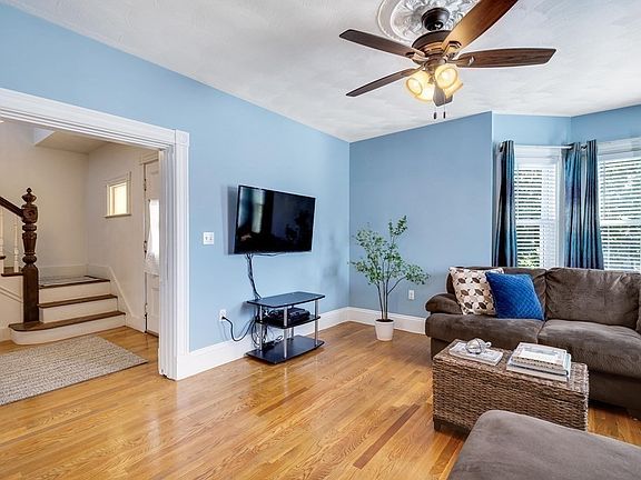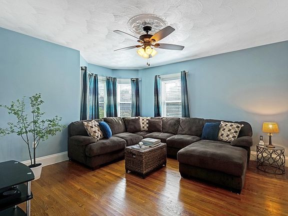 Step right inside this spacious well maintained home on nice tree lined street. Enter the welcoming foyer to a large living room & equally impressive sized formal dining room for all your entertainment needs. The fully appliance kitchen has a great layout for any cook with plenty of counter space & Cherry cabinets for storage. Second floor features large bedrooms & additional room off main bedroom (currently used as a walk in closet), but would make a great home office or nursery. Third floor walk-up features a bedroom & an additional living/family room. Wood floors thru out on 1st & under carpet on 2nd floor. Sellers updated garage doors, heating system & added central air, both in (2016). Enjoy outdoor gatherings in the back yard on the updated patio or cool breezes under the tree. This home also features a detached 2 car garage with additional parking in the driveway. Located near shopping, parks, schools & public transportation. Unpack your bags & Welcome Home!