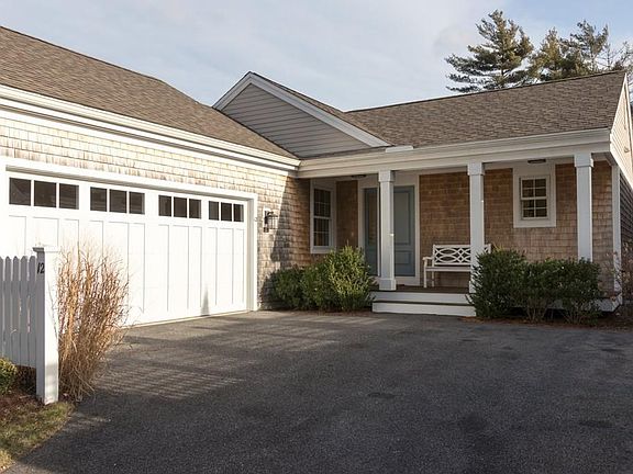 Stunning FRESCO II townhome in Rebecca's Landing at The Pinehills. One floor living with hardwood flooring throughout this bright, open floorplan home by The Green Company. Private courtyard and wooded back yard. Master bedroom suite with hardwood floors, bath boasts marble double vanity, large tiled shower with river rock floor. Open kitchen with large granite island, subway tile backsplash, white cabinets and appliances and large pantry leads to the open dining room and living room with crown molding. Glass door from living room to outdoor balcony overlooks private wooded setting. Spacious cobblestone inner courtyard highlights the home with spectacular garden landscaping of roses, hydrangeas and more. The perfect spot for outdoor entertaining. Beautifully maintained and move-in ready. Completed neighborhood in walking distance to private neighborhood pools and exclusive access to Clam Pudding Pond. A must see!