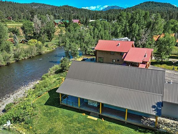 Welcome to 12 Red Ryder Circle! Once you arrive, you will never want to leave! This 1 1/2 story home has amazing views of the San Juan River from both levels. Open the over-sized living room sliding doors or sit outside on the wrap around covered porch, and listen to the tranquil sounds of the river rushing by. You will never get tired of this beautiful setting. Enjoy the rock wall, gas fireplace in the living room on cooler days. The open floor plan allows you to capture the gorgeous outdoor surroundings. The kitchen is open with an island that has seating for three. Appliances are stainless steel and all countertops are granite. An additional dining area allows for a more formal setting. Pine T&G white-wash, vaulted ceilings make the space airy and bright. The main level offers two bedrooms. Upstairs you will find a spacious bedroom along with an open loft area with seating facing the river view. Outside there is a gallery well and sprinkler system along with established landscaping. This home offer many amenities both inside and out! Each property owner has access to private fishing along the San Juan River and stocked ponds as well as private access into the San Juan National Forest.