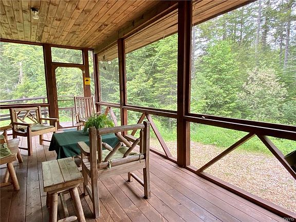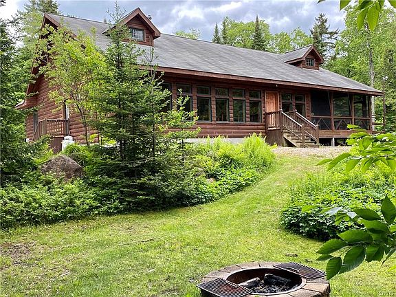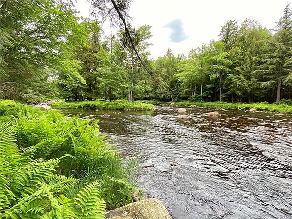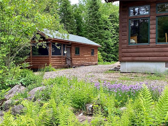 A business opportunity that could be a magnificent private retreat. The main lodge has 4 bedrooms each distant from the others, each with private full bathrooms. The guest cabin has sleeping for 6 (including fold-down futon sofa). This triple-lot property has 262 feet of water frontage and provides ample solitude. The river provides soothing, babbling sounds and a wonderful crossing point for wildlife. Across the river is the Moore Trail, leading 2 miles upstream to the Oswegatchie River canoe access. Downstream is a town beach and launch point for canoes and kayaks. A launch for motorized boats is 5 minutes away. The village hosts music events, town-widepotlucks in spring and fall, a women's book club, a small Art Gallery/Coffee house space and a local restaurant. It is also home to the renowned SUNY ESF Ranger School - a forestry, conservation and surveying college. Wanakena is a small village of 35 year-round residents and 125 in the summer. It is the gateway to the Five Ponds Wilderness Area with trailheads only moments from the lodge front door. High speed fiber-optic Internet services this community. A treasure in the Adirondacks