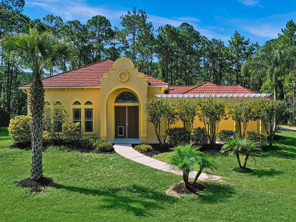 This beautiful four bedroom, two bathroom Mediterranean style home is situated on 6 amazing acres. The property is surrounded by lush Florida trees and two ponds in the desirable Eagle Rock Estates gated community. This home features an oversized living room with a double door entry and vaulted ceiling's, allowing for an abundance of natural light to enter the home. The kitchen has a breakfast bar with unique pendant lighting, granite countertops, wood cabinetry, undercabinet lighting and sleek stainless steel appliances. The split bedroom floor plan offers extra privacy for the master suite which features a bay window, newly upgraded vinyl plank flooring and a large walk-in closet. This home also has two new air conditioners, a metal tile roof, hurricane impact windows and doors and a utility shed in the yard. You will truly appreciate the privacy of this property. This is one you will want to see, call and schedule an appointment today!