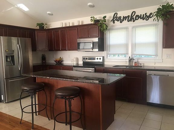 - Kit Dscrp: Countertops - Stone/Granite/Solid, Ceiling - Cathedral, Flooring - Stone/Ceramic Tile, Kitchen Island, Stainless Steel Appliances, Open Floor Plan, Recessed Lighting, Lighting - Overhead