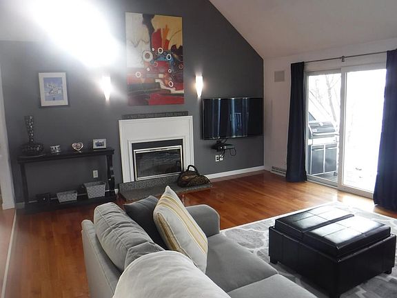- Liv Dscrp: Fireplace, Flooring - Hardwood, Ceiling - Cathedral, Slider, Balcony / Deck