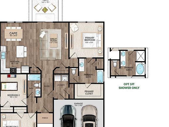 The single-story plan features a split layout with the master suite separate from the additional bedrooms.. The home included an open kitchen with lots of cabinets, dining and living area, two car garage and a primary suite with a large walk-in closet.