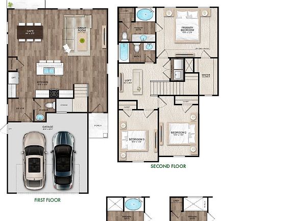 Bismarck II TR (1617 sq.. ft.) is a 2-story home with 3 bedrooms, 2.5 bathrooms and 2-car garage. Features include loft, patio and walk-in closets.
