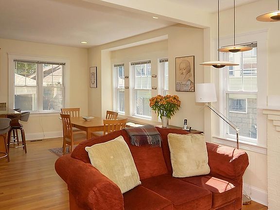 Lovely, bright single-family alternative! 2-bedroom, 1.5-bath duplex-style townhouse in Arlington Heights. This wonderful unit was completely renovated in 2006. The first floor, open-floor plan, offers a spacious foyer with an oversized closet, a fireplace living room with sparkling hardwood floors throughout, 1/2 bath, warm, modern kitchen with cherry cabinetry, granite countertops, and breakfast bar which opens to the sun-filled dining area boasting an inviting window seat. The second floor level has two generous size bedrooms, plus a home office/study and a full tiled bath. The walk up attic and spacious basement is great for storage or expansion possibilities. Outside, the newer deck overlooks the shared backyard, detached 1 car garage. Located just steps away from shops, restaurants & public transportation, convenient to major routes. This is a must see!!!