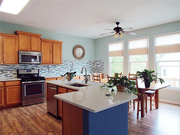 - Kitchen Features: Breakfast Bar, Cabinets Stain, Pantry, Wine Rack, Eat-in Kitchen, Solid Surface Counters, View to Family Room, Kitchen Island