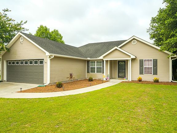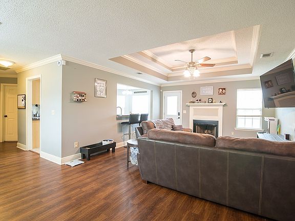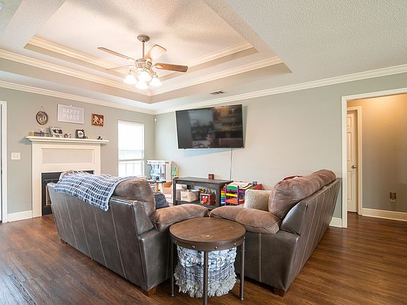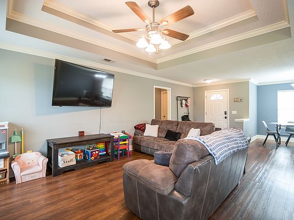 Come see this wonderful 3/2 home in Grand Bay Ridge! Conveniently located near MAFB, this lovely home boasts an open floor plan with tray ceilings in both the family room and master bedroom. Pretty laminate and tile floors and neutral paint colors make this home move-in ready! There is a fireplace in the family room, a spacious dining room near the entrance, and a kitchen with a breakfast nook. Light cabinets and dark countertops add a pretty contrast with the stainless steel appliances. Off the master bedroom is the master bath with a double vanity, stand-up shower, garden soaker tub, and sizable walk-in closet. The other two bedrooms both have ceiling fans, and the second bathroom with a beautiful vanity is located conveniently between them. Let's not forget about the 1/2 acre lot- there is an above ground pool for hot summer days and a fully fenced yard with plenty of room to play!