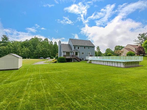 The curb appeal of this home is spectacular! Located in the Shattuck Estates neighborhood, this colonial is looking for a new owner! Inside you will find the same wood laminate floors running throughout the entire main level for sweeping and spacious feel. The eat in kitchen hosts stainless steel appliances with gas stove, plenty of cabinet space and a large picture window to let natural light pour in. Off the kitchen is a bright and tasteful formal dining room with crown molding as well as a massive family room with high ceilings, a wood burning fireplace, and a slider to your rear deck. Main level also has an additional living room and a half bath with washer and dryer. Upstairs hosts a large master suite with cathedral ceilings, and two additional bedrooms that share a full bath with dual vanity. Additional storage in walk up attic, Finished bonus space in the basement can be used for any purpose, large back yard with above ground pool is perfect for the warmer summer months!