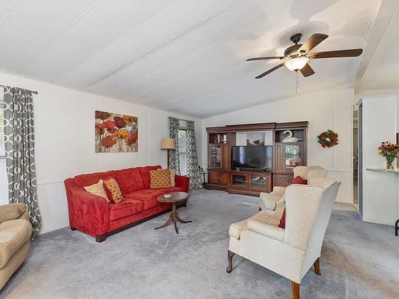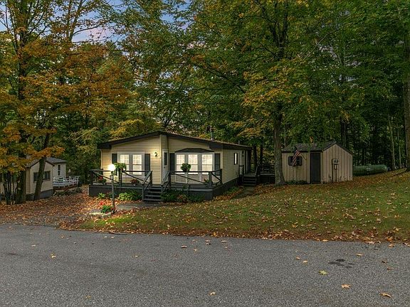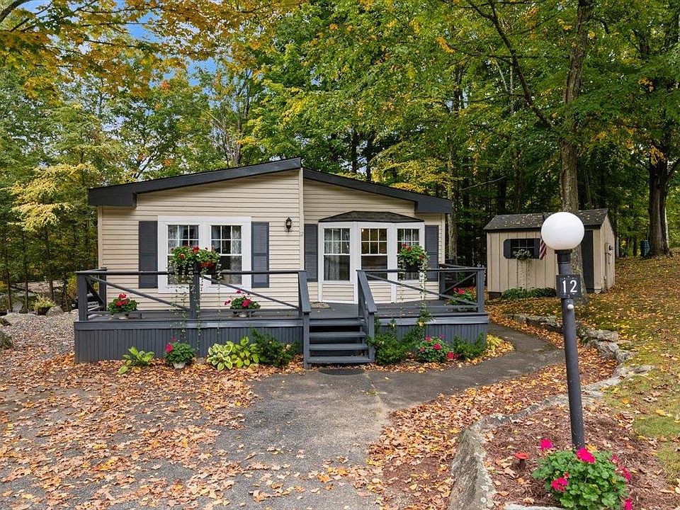 This well-maintained home, nestled on a picturesque tree-lined lot in the desirable Iron Wheel Park, is a perfect blend of comfort and convenience for 55+ living. Featuring both a cozy front deck and a more private back deck, the outdoor space offers plenty of room for relaxation and entertaining. Inside, the home boasts an inviting open concept design between the dining and living areas, enhanced by a vaulted ceiling and ceiling fan, creating a spacious and airy feel. The primary bedroom offers ample storage with a large closet and an ensuite full bath, with enough room for a dressing table or bureau. The second bedroom provides easy access to the back deck with convenient sliding doors, perfect for enjoying your morning coffee in peace. The separate dining area flows seamlessly into the kitchen, which has been tastefully upgraded during the seller’s ownership. Enjoy modern kitchen cabinets, updated appliances, and beautiful granite countertops. Additionally, the roof has been recently replaced, giving you peace of mind. A separate shed on the property offers extra storage space for your gardening tools, seasonal decor, or hobby equipment.