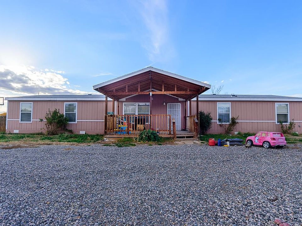 Come see this 2200+ sq foot home on 3/4 acres with irrigation from the nearby acequia. There's room for the whole family with 3 bedrooms, a bonus room that could be your work from home office or hobby room, two full bathrooms including the 5-piece master bath, and A/C! The master bedroom even has 2 closets. In the kitchen, there are stainless steel appliances and even more counter space on the island. Just off the spacious kitchen you'll find the washer and dryer hook-ups. Outside, the lot backs up to agricultural land so no backyard neighbors. There is a chicken coop, a basketball court, and a spacious front porch with roof just for you all at the end of a quiet street. You won't want to miss the views and sunsets. Come have a look!
