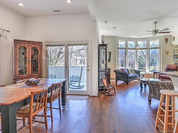 Relax and unwind by the Swannanoa River in the desirable Riverknoll Community, ideally located 10 minutes from downtown Asheville, but nestled in a wooded community a world away. Stroll along the river or over to the pool just steps from your deck. With 10' ceilings, this open plan corner unit lives large, and is ideal for entertaining friends & family. The stunning custom designed kitchen boasts style and function, with black walnut countertops, gorgeous soft close wood cabinetry & glass tile backsplash. The highly functional Miele Speed Oven, dishwasher & built-in coffee maker are joined by a flush mount Kitchen Aid refrigerator & induction cooktop. Look for hidden features in this heart of the home when you visit: toe kick drawers, custom pullouts & corner cabinets. Nestle by the gorgeous gas fireplace in winter, or step onto one of 2 decks to enjoy nature's gifts in spring. Updated systems mean low maintenance; 2018 HVAC, 2012 fireplace & 2016 appliances. Hurry, this is a must see!