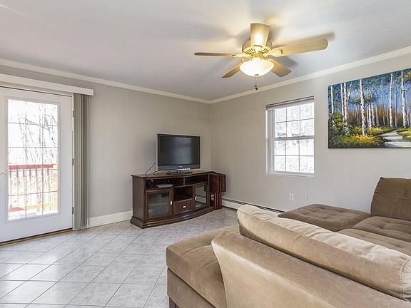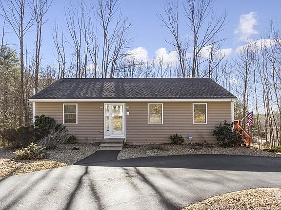 Stunning Contemporary Ranch, sun filled open concept living room, dining room and kitchen with breakfast nook, master bedroom has hardwood floors,walk-in closet & access to full bath with jacuzzi tub & walk in shower, laundry, fully finished lower level with 2 more bedrooms & full bath, den, walk-in closet. Maintenance free yard and woods in the back/ private back yard. No yard work here. Enjoy your weekend. Better than a condo. On 1 acre and easy walk to town.