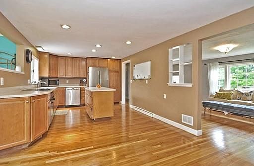 Welcome Home to 12 Riverbend Drive! What an outstanding opportunity to entertain family & friends in this gorgeous Contemporary Style Home full of amenities. The modern floor plan includes a warm & inviting fireplaced living room beaming with natural light & MASSIVE family room with cathedral ceilings, architectural glass & pellet stove. The kitchen boasts custom cabinetry, stainless appliances, corian counters & a stunning sun room with vaulted ceilings overlooking the gigantic fenced-in yard. The main level also offers gleaming hardwoods, 4 large bedrooms, a master bath & updated full bath. Thereâs 2 separate stairways leading to the lower level that features a large game room, media room, full bath, huge laundry area & garage access. Vacation at home with a 2-tiered deck, an impressive in-ground pool, a full basketball court, lush landscaping & privacy on an oversized near acre lot. All of this & more nestled on a quiet side street in the highly coveted South Natick part of town.